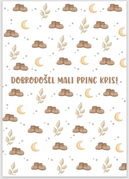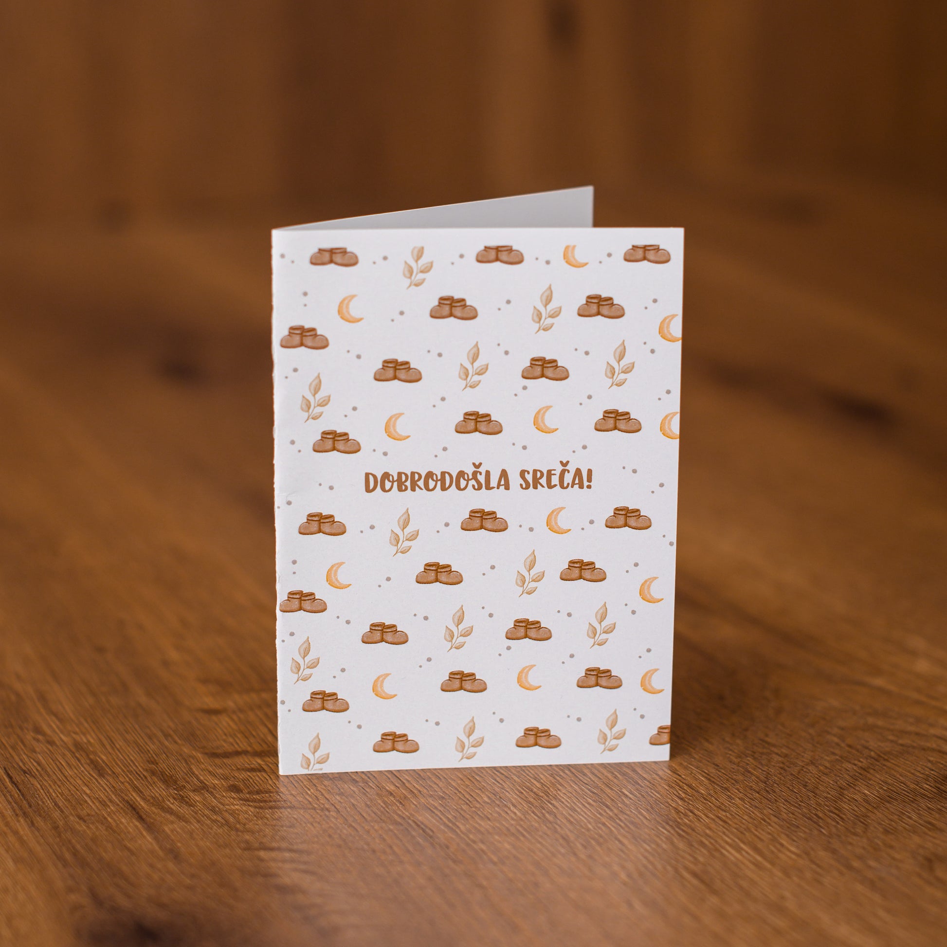 Čestitka z ilustriranim vzorcem, "Dobrodošla sreča".