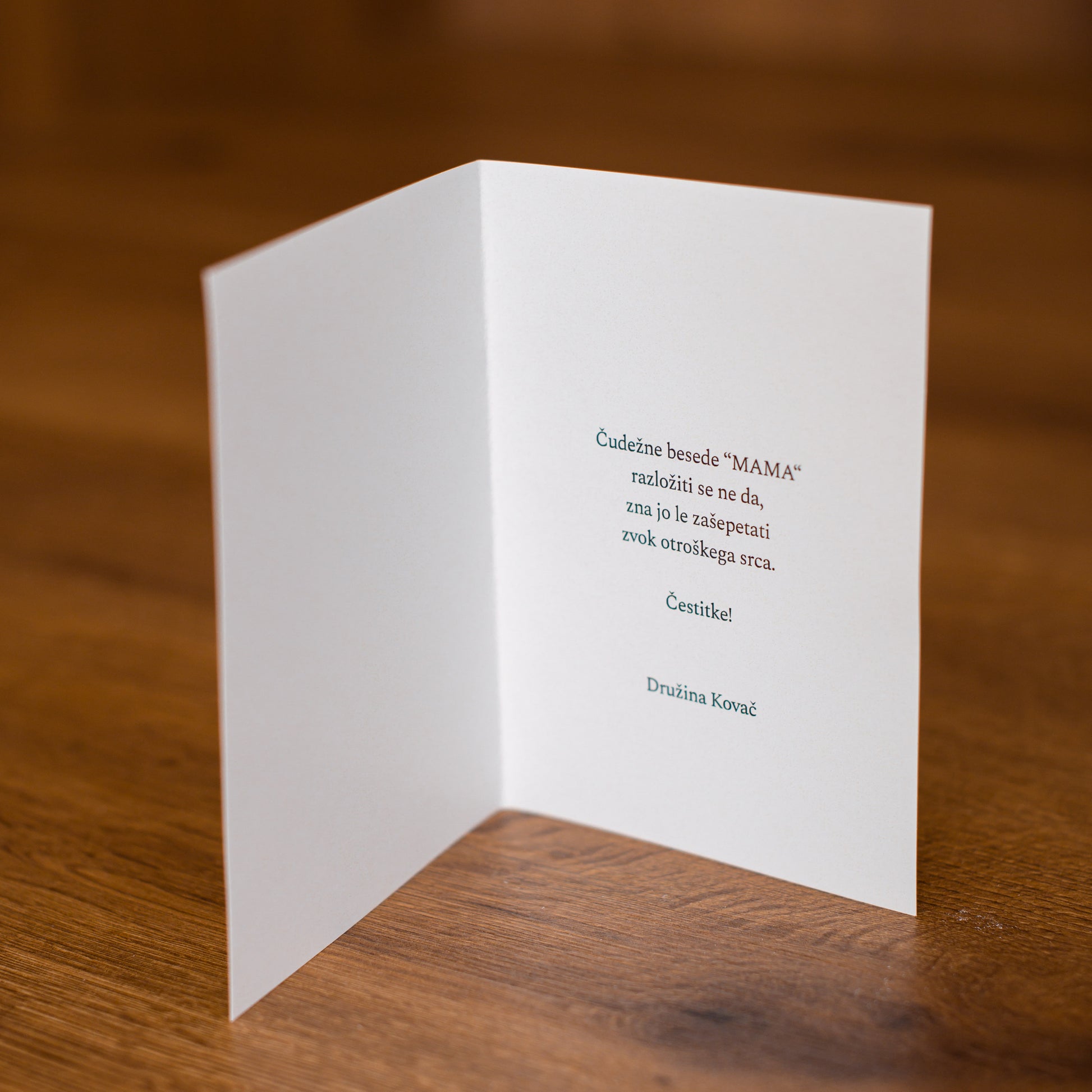 V polje "podpis" vpišite vse tiste, ki bi jih želeli podpisati na čestitko (kot na sliki - družina Kovač). Če želite čestitko podpisati sami, to polje pustite prazno.