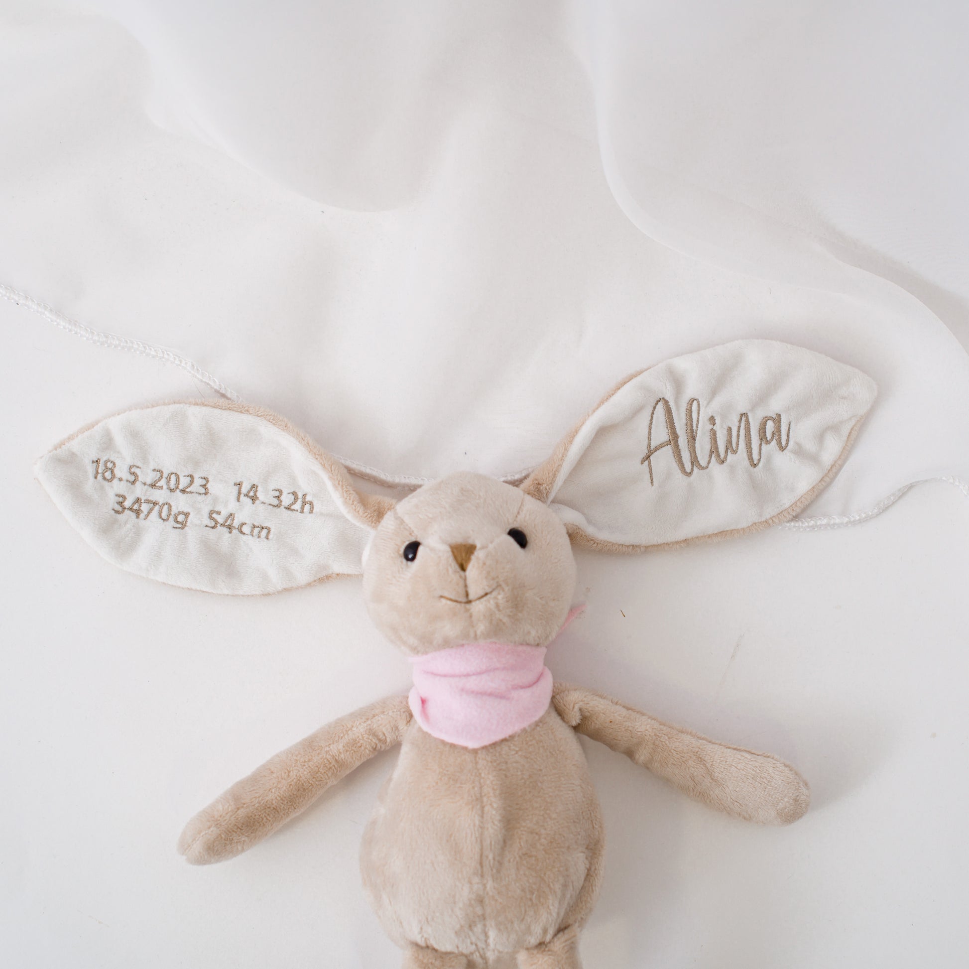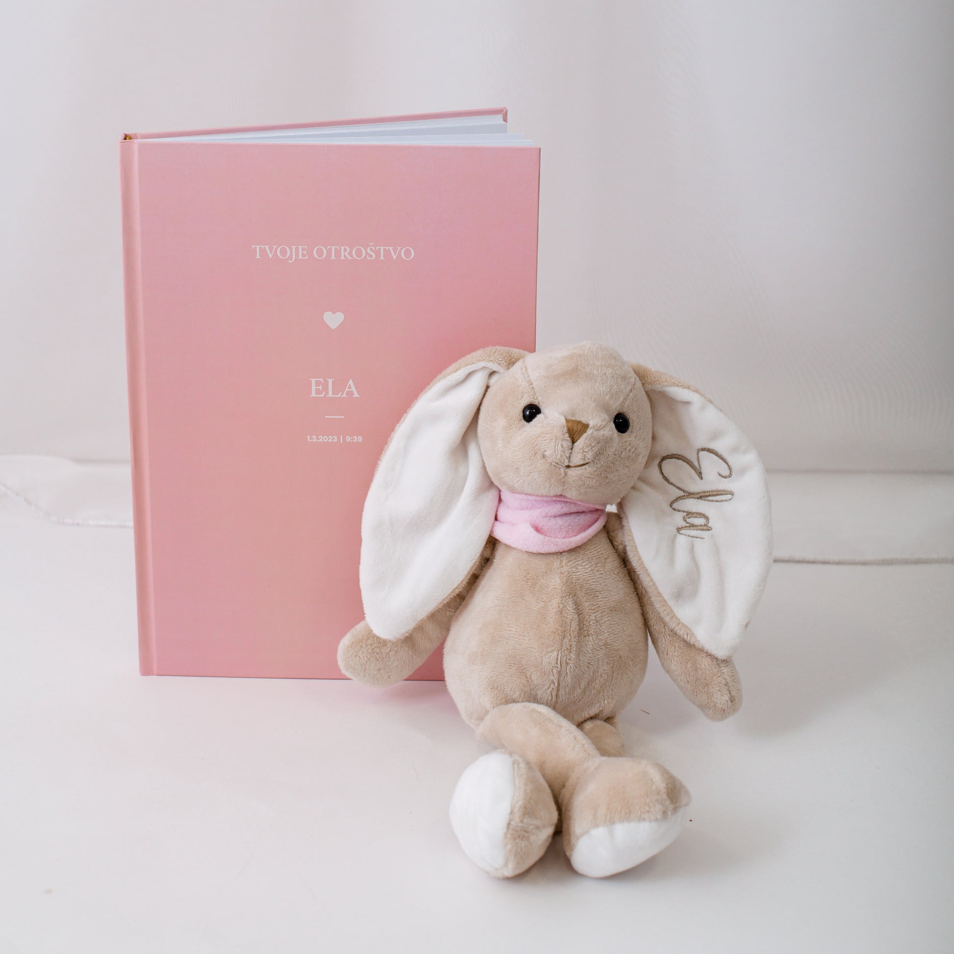 Razveselite družino ob rojstvu otroka s tem čudovitim darilnim setom, ki vključuje ljubkega personaliziranega zajčka in čarobno beležnico. Ta edinstvena kombinacija bo ustvarila nepozabne trenutke v prvih letih otrokovega življenja.