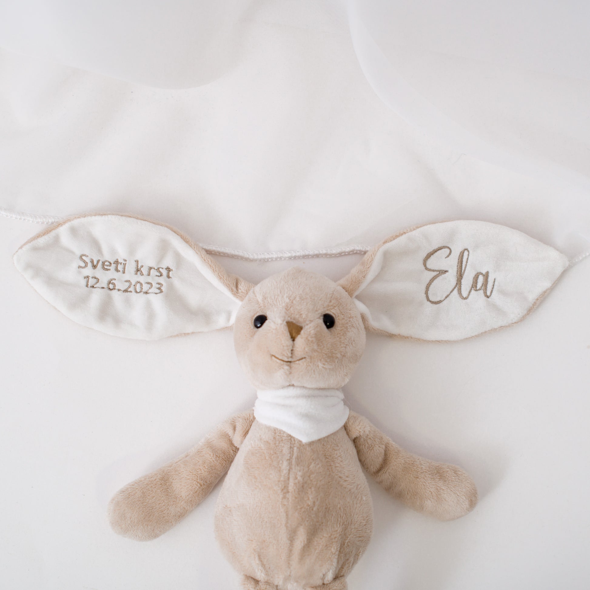Prosimo, upoštevajte, da je cena zajčka personaliziranega na obeh ušesih višja od personalizacije na enem ušesu.