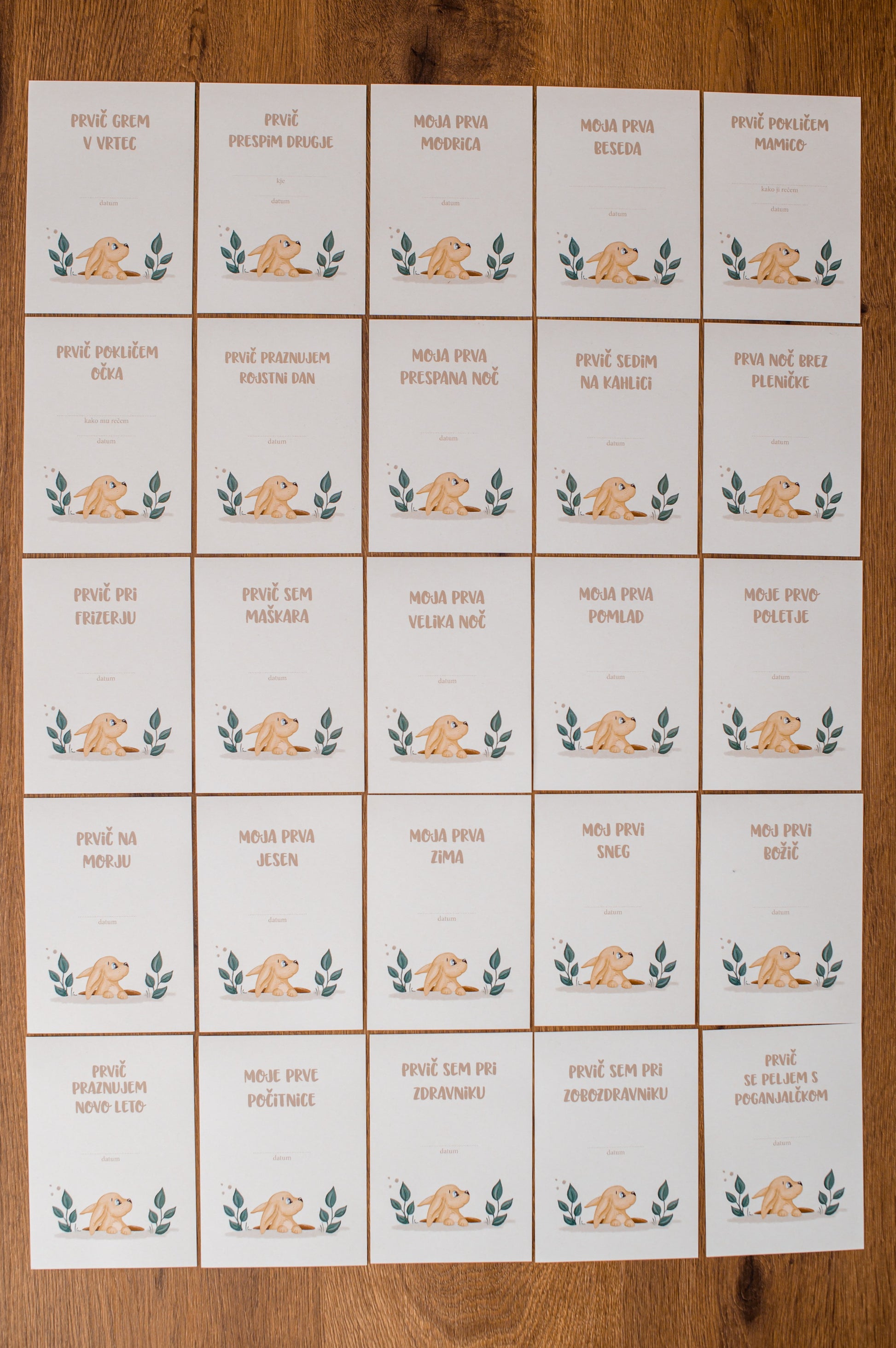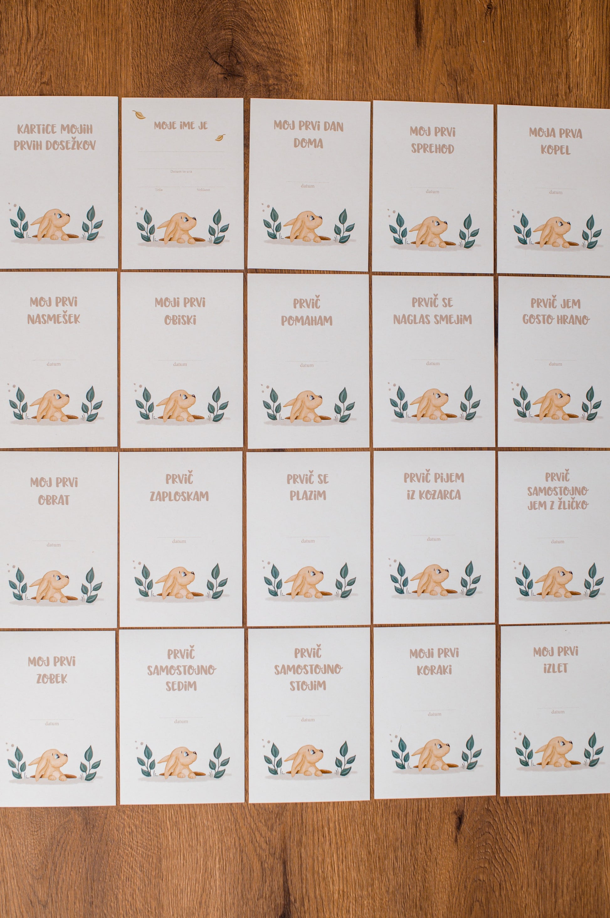 Komplet kartic mejnikov za prvo leto vašega dojenčka z motivi zajčkov.