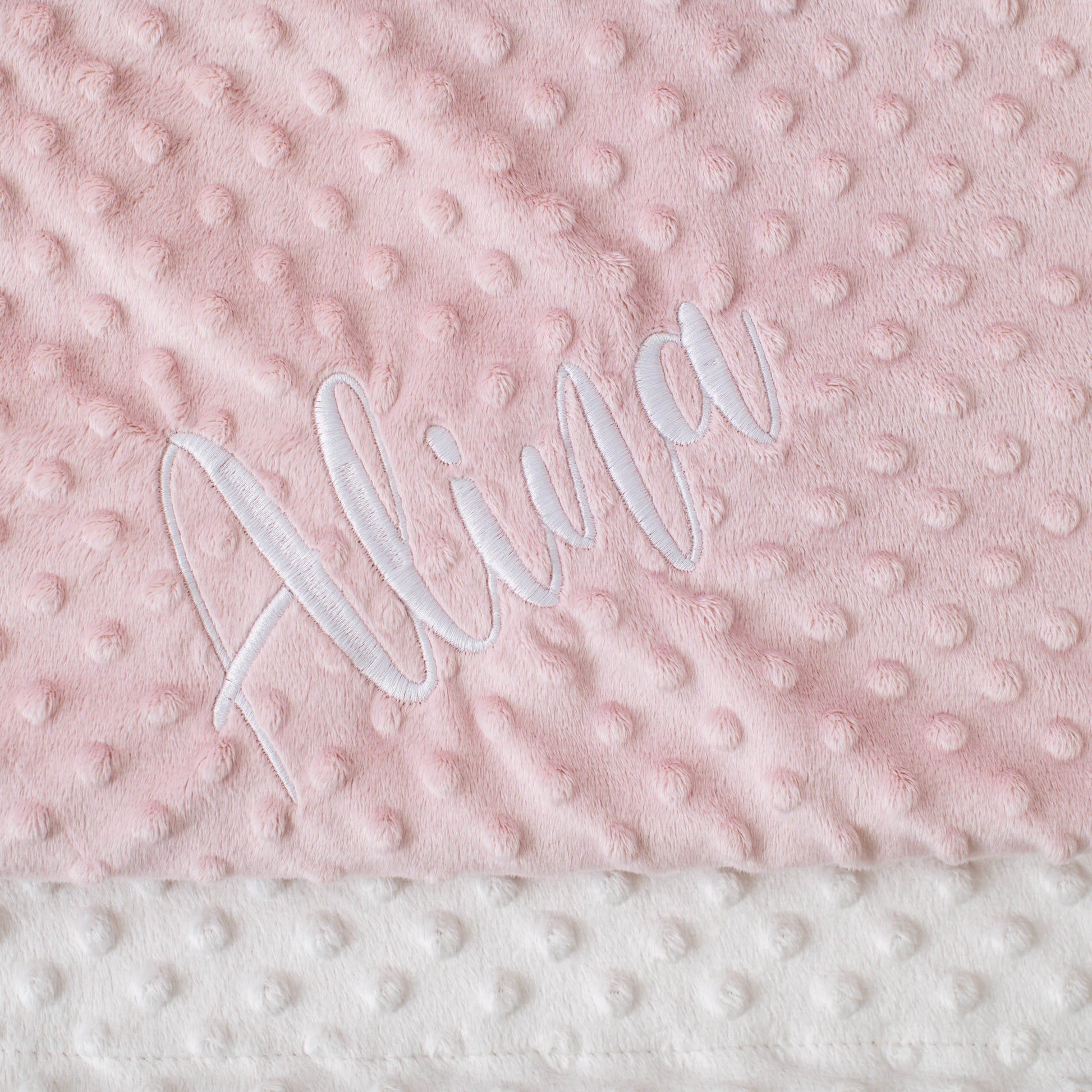 Personalizirana odejica je popolna mešanica elegance in igrivosti. S svojimi dimenzijami je ravno pravšnja, da vsakemu dojenčku zagotovi udobje in toplino v vsaki situaciji. Na eni strani je nežna bela barva blaga, ki izžareva čistost in eleganco. Na drugi strani pa se prepletata nežna roza barva in mehkoba tkanine, ki prinašata dotik igrivosti. Poleg tega ponujamo personalizacijo, saj dojenčkovo ime izvezemo po vaši želji. Izberete lahko elegantno kombinacijo bele barve na roza blagu ali igrivo kombinacijo roza barve na belem blagu.
