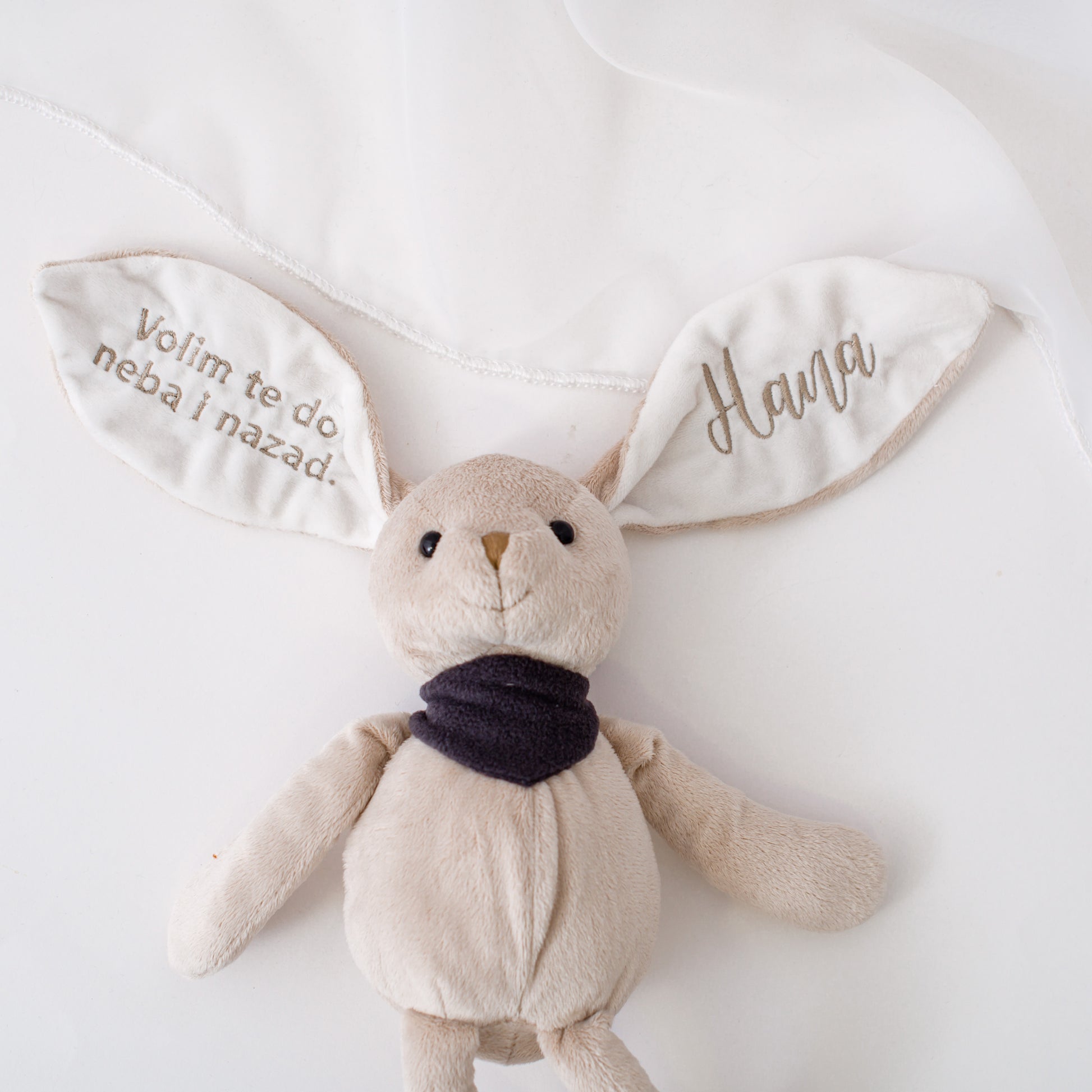 Izberite neverjetno mehkega in prikupnega personaliziranega zajčka, ki je popolno darilo za vsakega novorojenčka ali malčka. Poleg tega bo ta čudovit zajček prav tako lep dodatek otroški sobici ter zvesti sopotnik v težkih trenutkih.