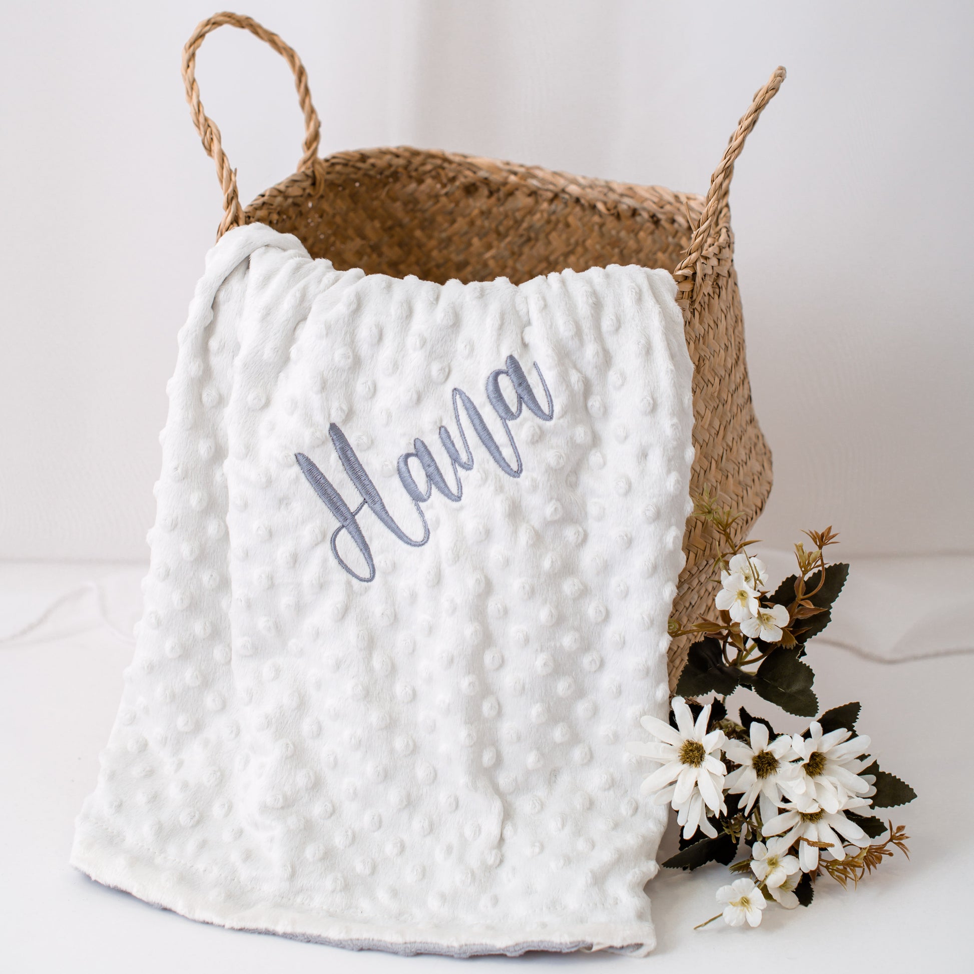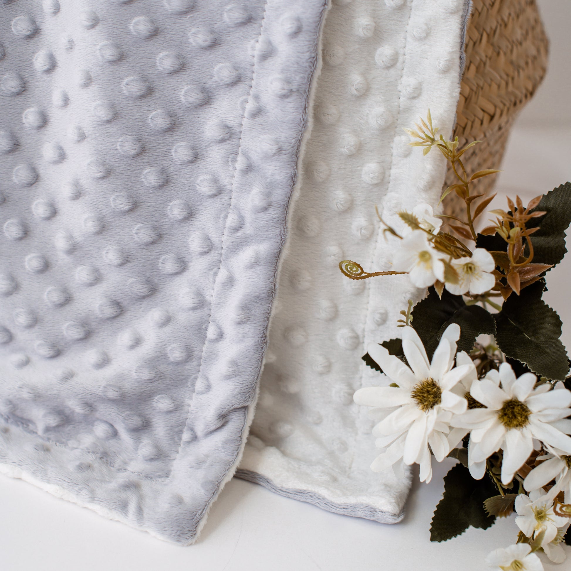 Ta personalizirana odejica za dojenčke je več kot le vsakodnevni izdelek - je simbol ljubezni, nežnosti in skrbi za vsakega dojenčka. Ko ga ovijete v to mehko odejico, bo vaš dojenček občutil neverjeten občutek udobja in varnosti. Vsak trenutek preživet v njenem objemu bo popolna priložnost za ustvarjanje čudovitih spominov. Nežna bela in siva barva blaga se čudovito podata k vsaki otroški posteljici ali vozičku.