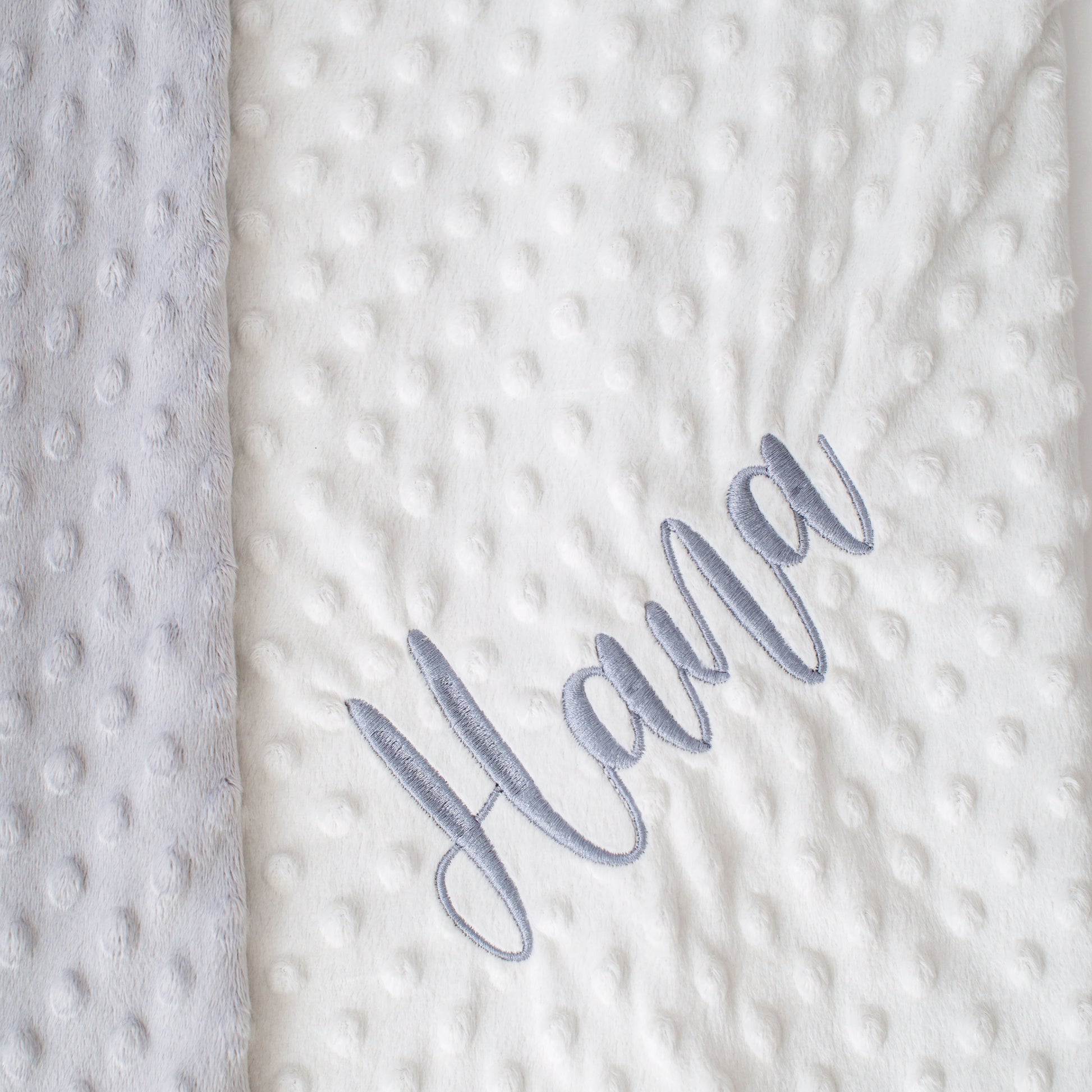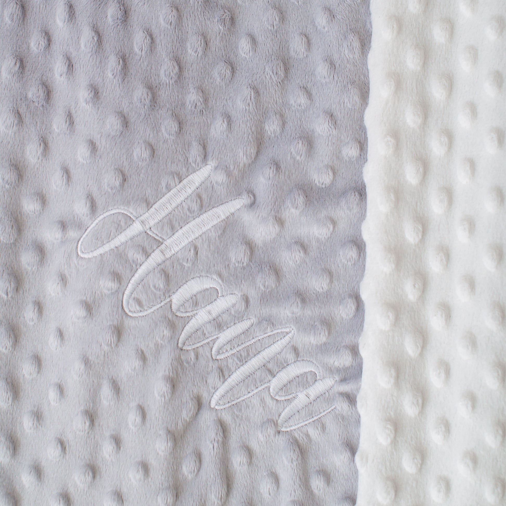 Personalizirana odejica je popolna mešanica elegance in igrivosti. S svojimi dimenzijami je ravno pravšnja, da vsakemu dojenčku zagotovi udobje in toplino v vsaki situaciji. Na eni strani je nežna bela barva blaga, ki izžareva čistost in eleganco. Na drugi strani pa se prepletata nevtralna siva barva in mehkoba tkanine, ki prinašata dotik igrivosti. Poleg tega ponujamo personalizacijo, saj dojenčkovo ime izvežemo po vaši želji. Izberete lahko elegantno kombinacijo bele barve na sivem blagu ali igrivo kombinacijo sive barve na belem blagu.